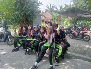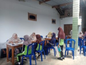 Siswa siswi kelas 6B mendatangi lokasi kegiatan Posyandu di salah satu rumah warga, mereka termasuk bagian dari peserta Posyandu yang dijadwalkan pada hari itu, Rabu 8 April 2026.